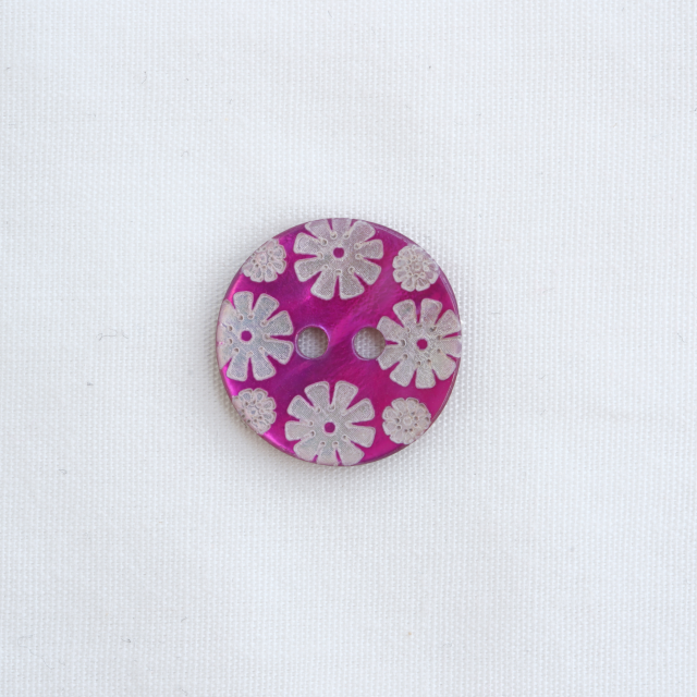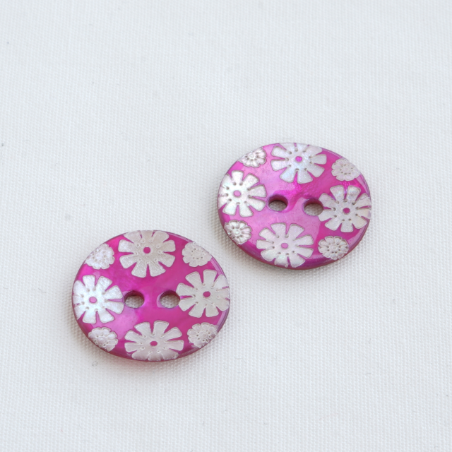 カラー貝ボタン 花 フューシャ fbs002