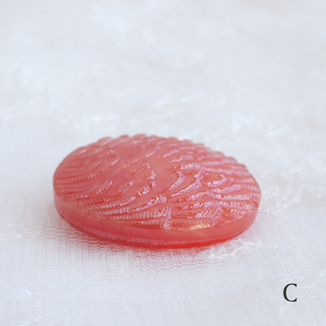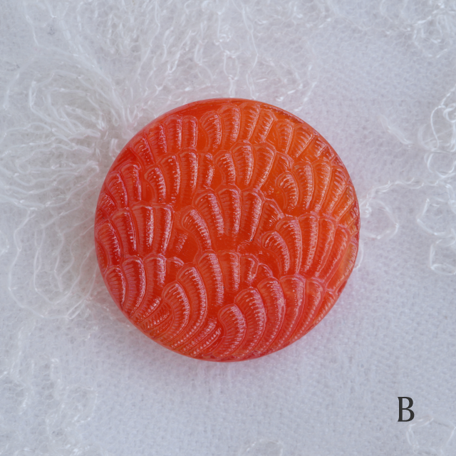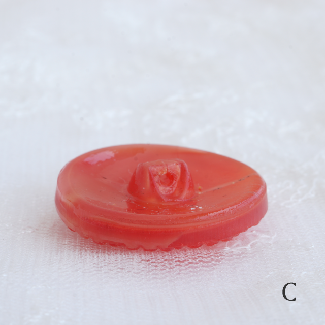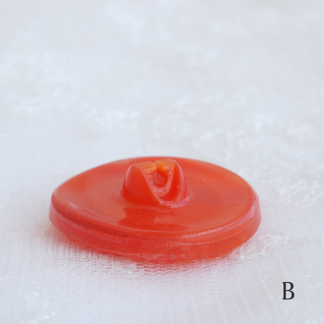 Bはシャンクが切れているようにも見えますが細いミシン糸でも抜けません。縫い付ける際は念のため太めの糸をお勧めします。少しオレンジがかった赤です。