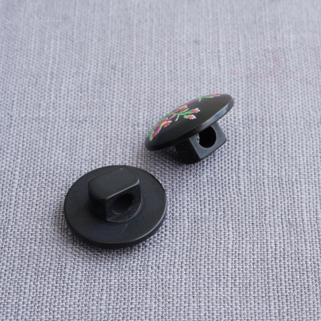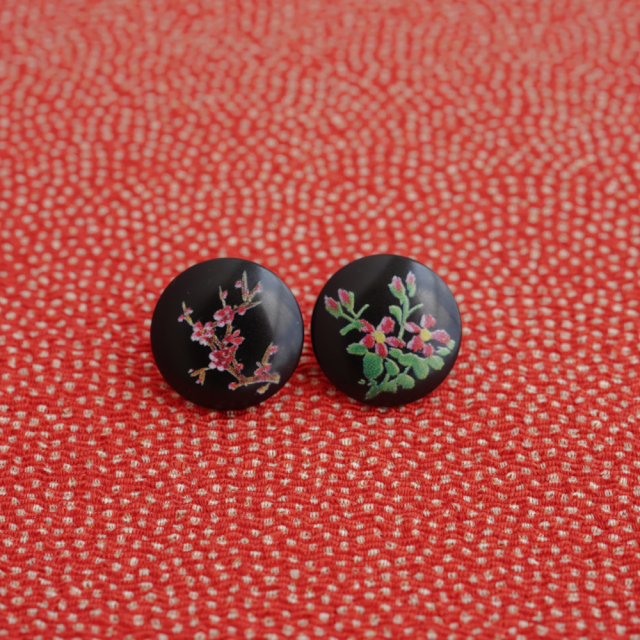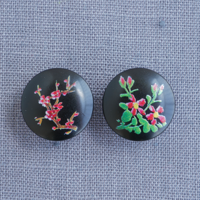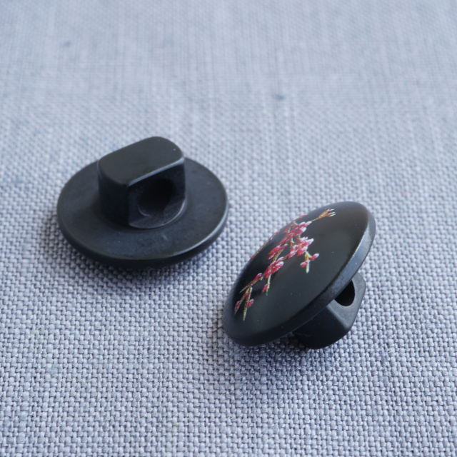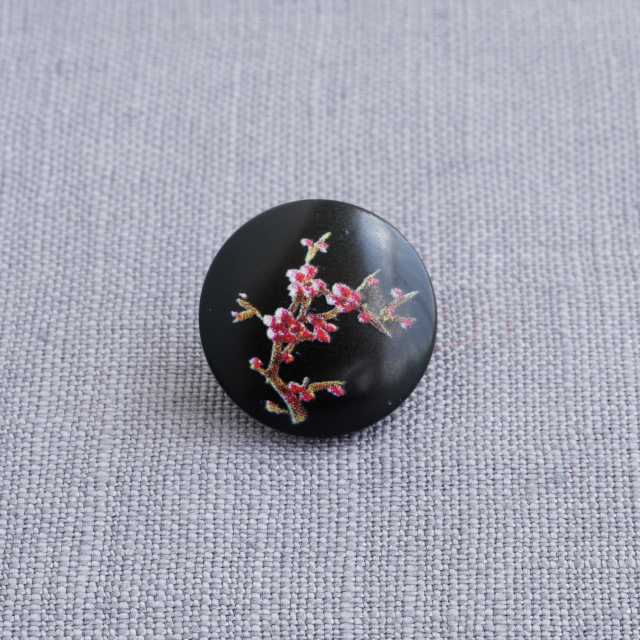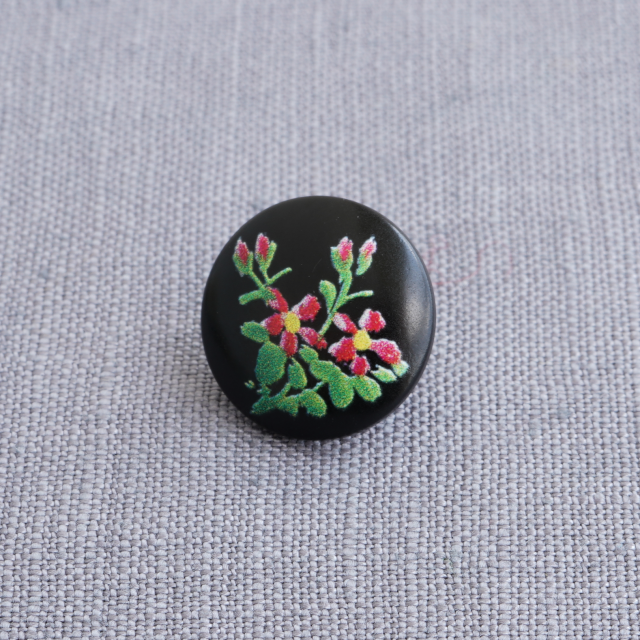 黒のボタンにお花の絵がプリントされています。和風な雰囲気もあってシックでなボタンです。