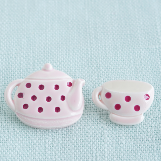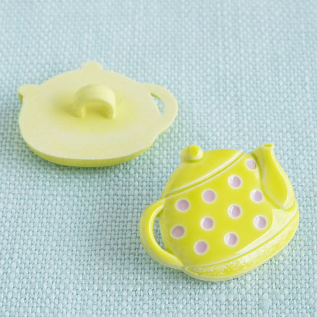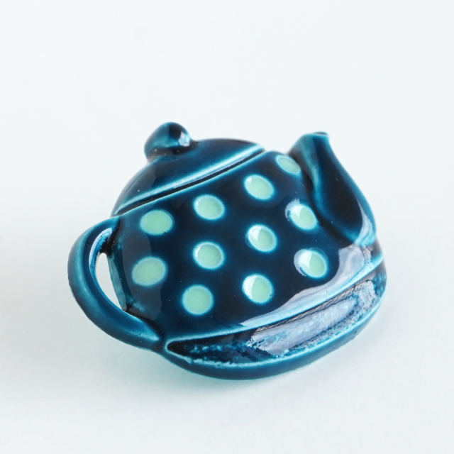 まるで本物の陶器のポットのようなつやつやした質感のボタンです。