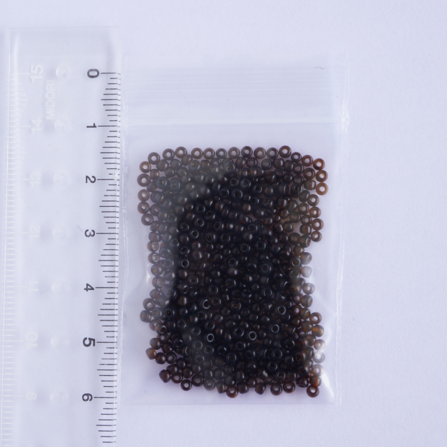 光に透かすと透明感があるのがわかるといったような濃いこげ茶色です。サイズ10/0