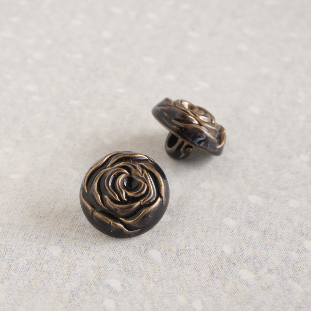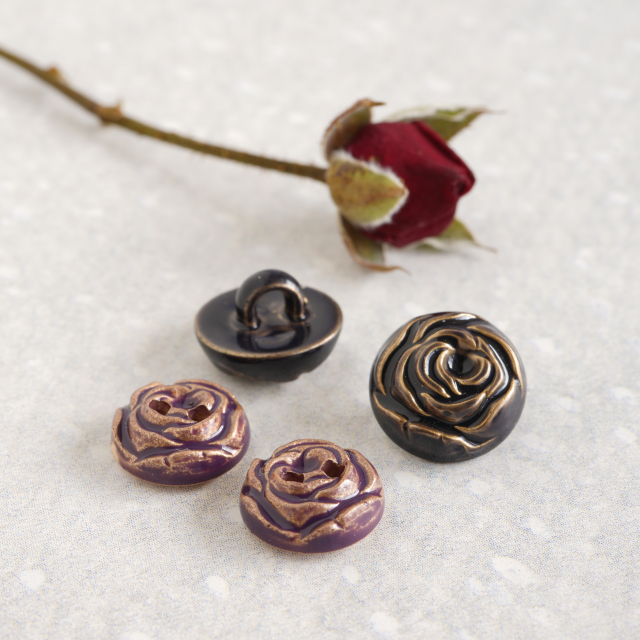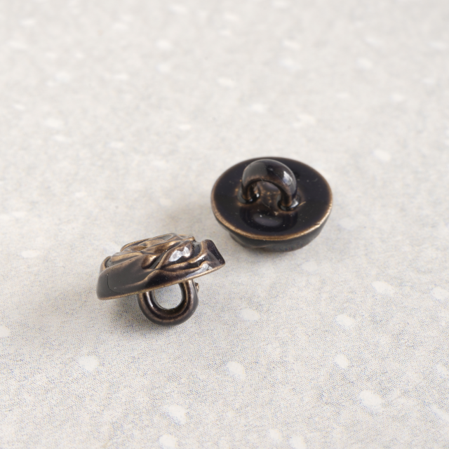 陶器感のある二つ穴のこちらのボタン(→)と形が似ていますが、こちらは土といった感じではなくてどちらかというとメタリックな雰囲気です。